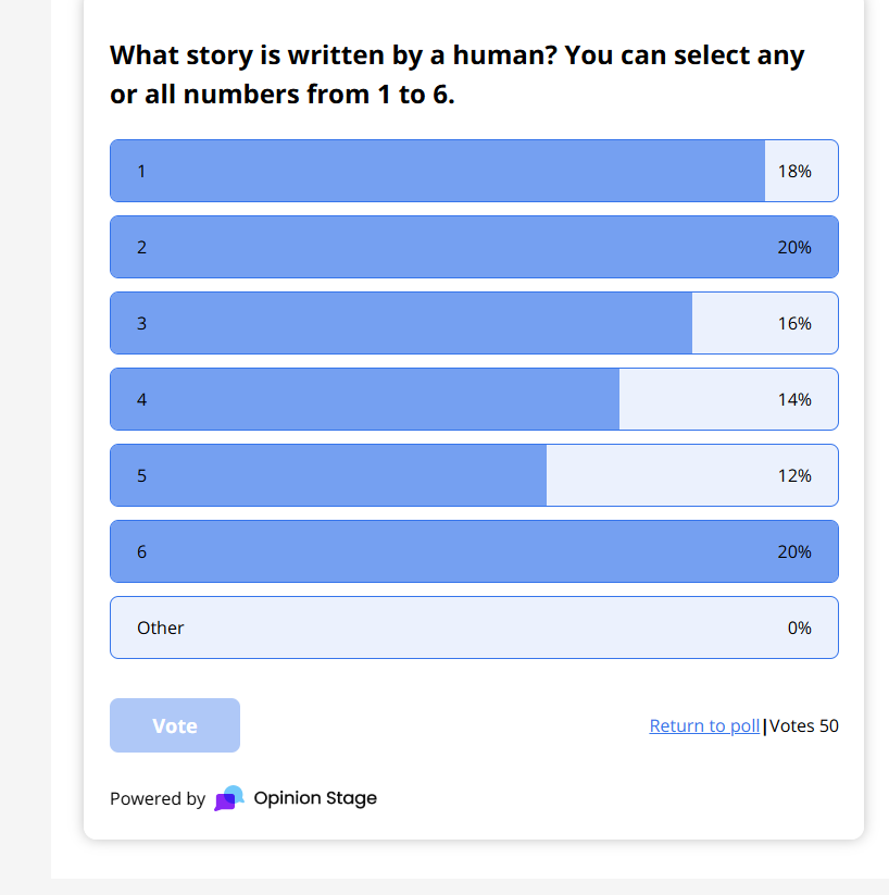 The results of the poll “Human vs. AI writer” are in.