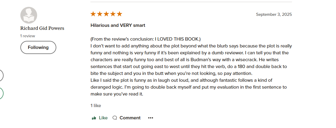 “Budman weaves a wild and entertaining surrealistic tale of a reanimated Vladimir Ilyich Lenin, coming back from the dead to make a run for the Presidency in the most unlikely of places, the United States of America. Lenin attracts a disparate band of sycophants who guide, and misguide, him through the political landscape of the 21st century. With a pinch of Bulgakov, and a dash of Gogol, Budman pulls off, in high style, a classic piece of Russian (and American) satire.”