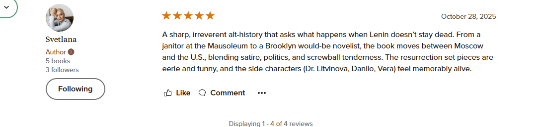 I’m humbled and excited to share the news that my novel, The Lives and Deaths of Vladimir Lenin, was published by Nat 1 Publishing in July of 2025.